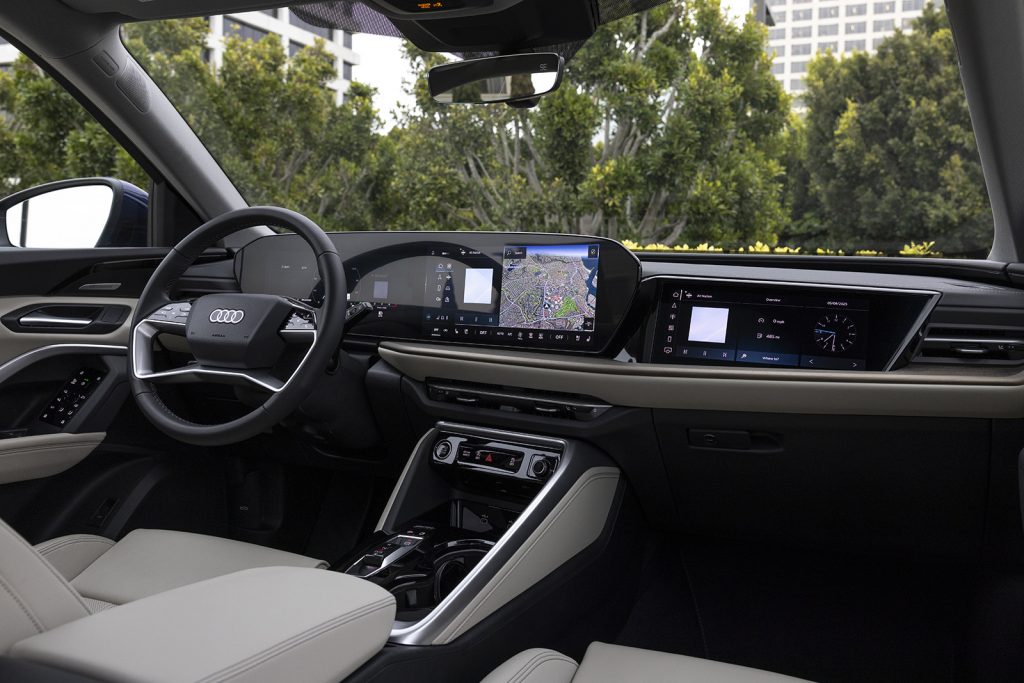 The interior follows the modern Audi template of clean lines and expansive screens.