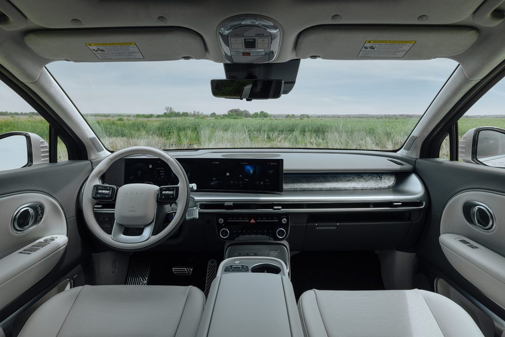 The interior is where Hyundai’s upscale ambitions really show. The materials feel soft and substantial, and the layout avoids the cold minimalism some EVs lean on.